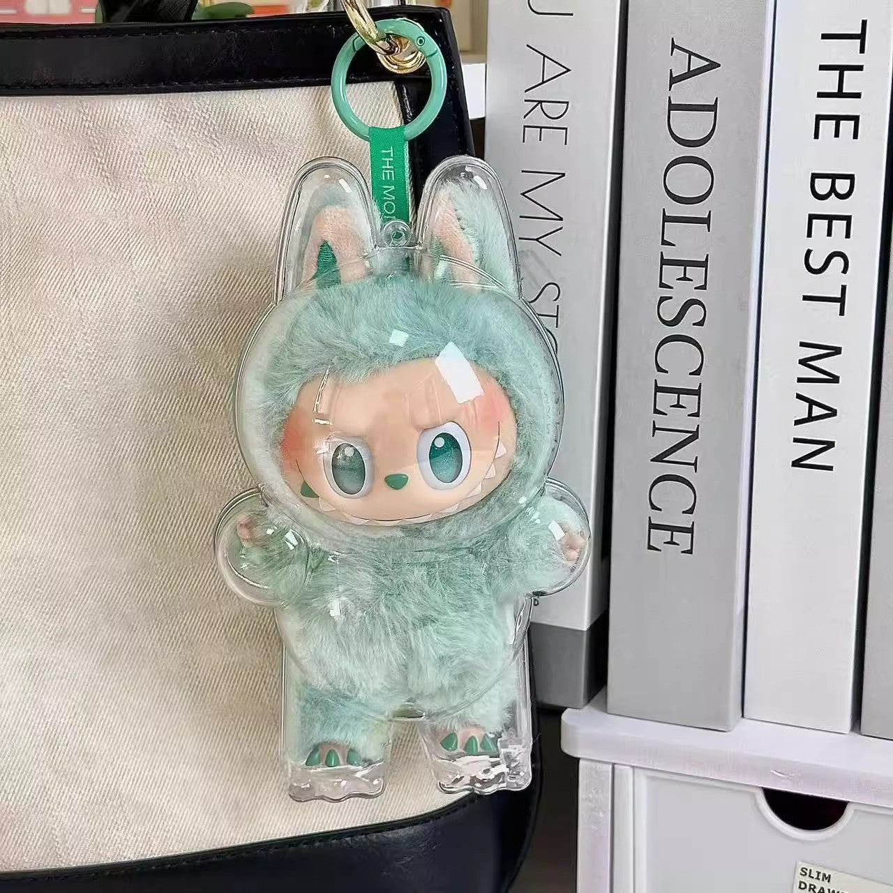 Protective Case for LABUBU The Monsters Big into Energy, Display Stand Acrylic Case Cover Accessories with Silicone Strap White - Standing Case, Clear