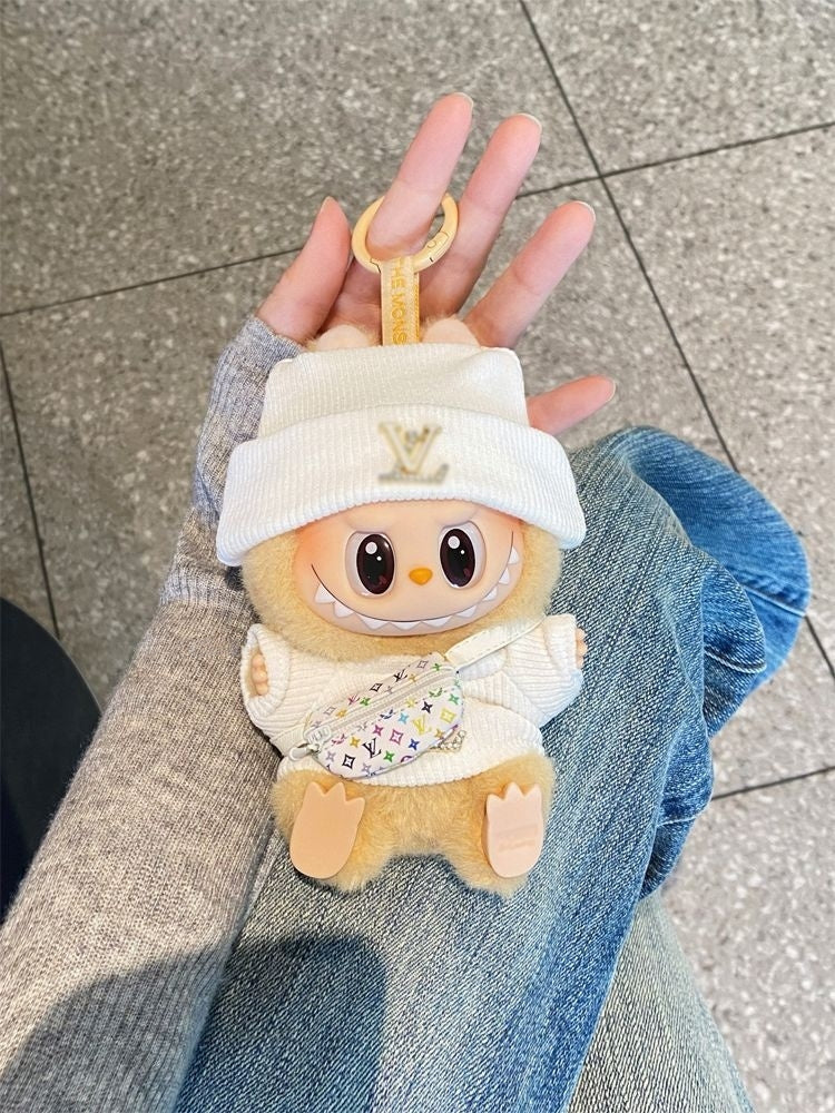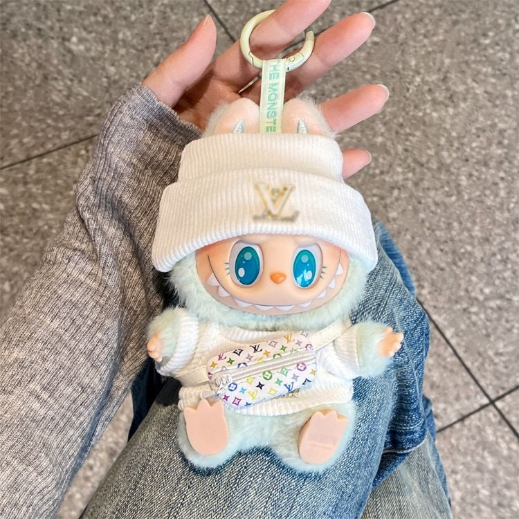 Give your Labubu a clean and stylish streetwear look! This 3-piece outfit set includes a cozy white beanie, matching hoodie, and a colorful mini crossbody bag. compatible with Gen 1, Gen 2, and Gen 3 dolls. Easy to dress, ultra-soft fabric, and full of personality—because every Labubu deserves to slay the day in style.